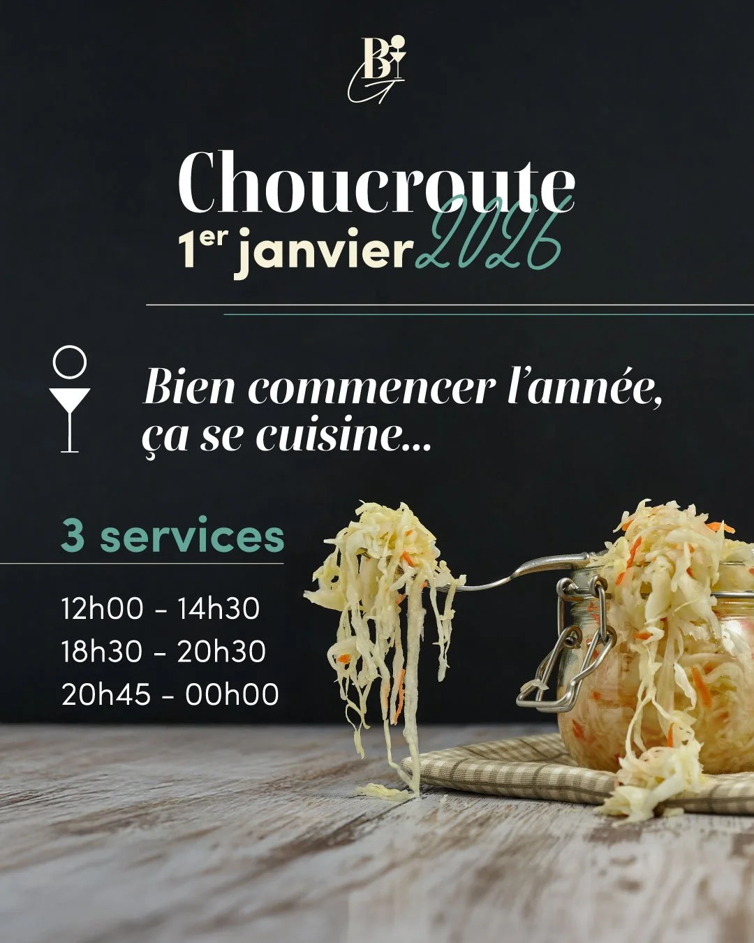 Pour commencer l’année du bon pied, nous vous proposons la choucroute du 1er janvier, servie dans une ambiance chaleureuse et conviviale.